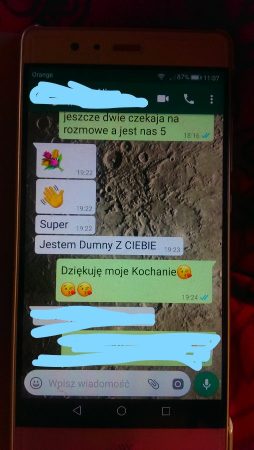 Jak już się obroniłam, to niezwłocznie poinformowałam o tym fakcie wszystkich moich bliskich..:)) Oczywiście wszyscy wysyłali mi gratulacje, ale najbardziej zaskoczył mnie mój małżonek. Do tej chwili miałam wrażenie, że uważa, iż wymyśliłam sobie kolejne studia, bo mam taką zachciankę, ale swoją wiadomością dodał mi skrzydeł..:))